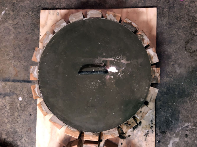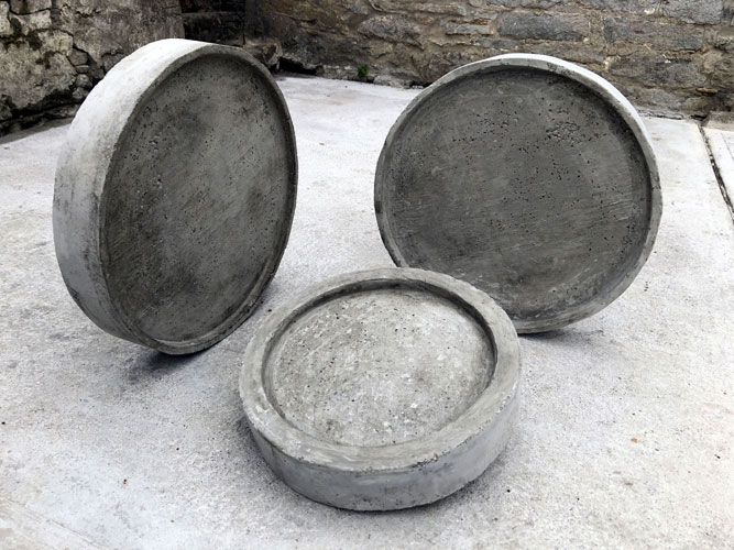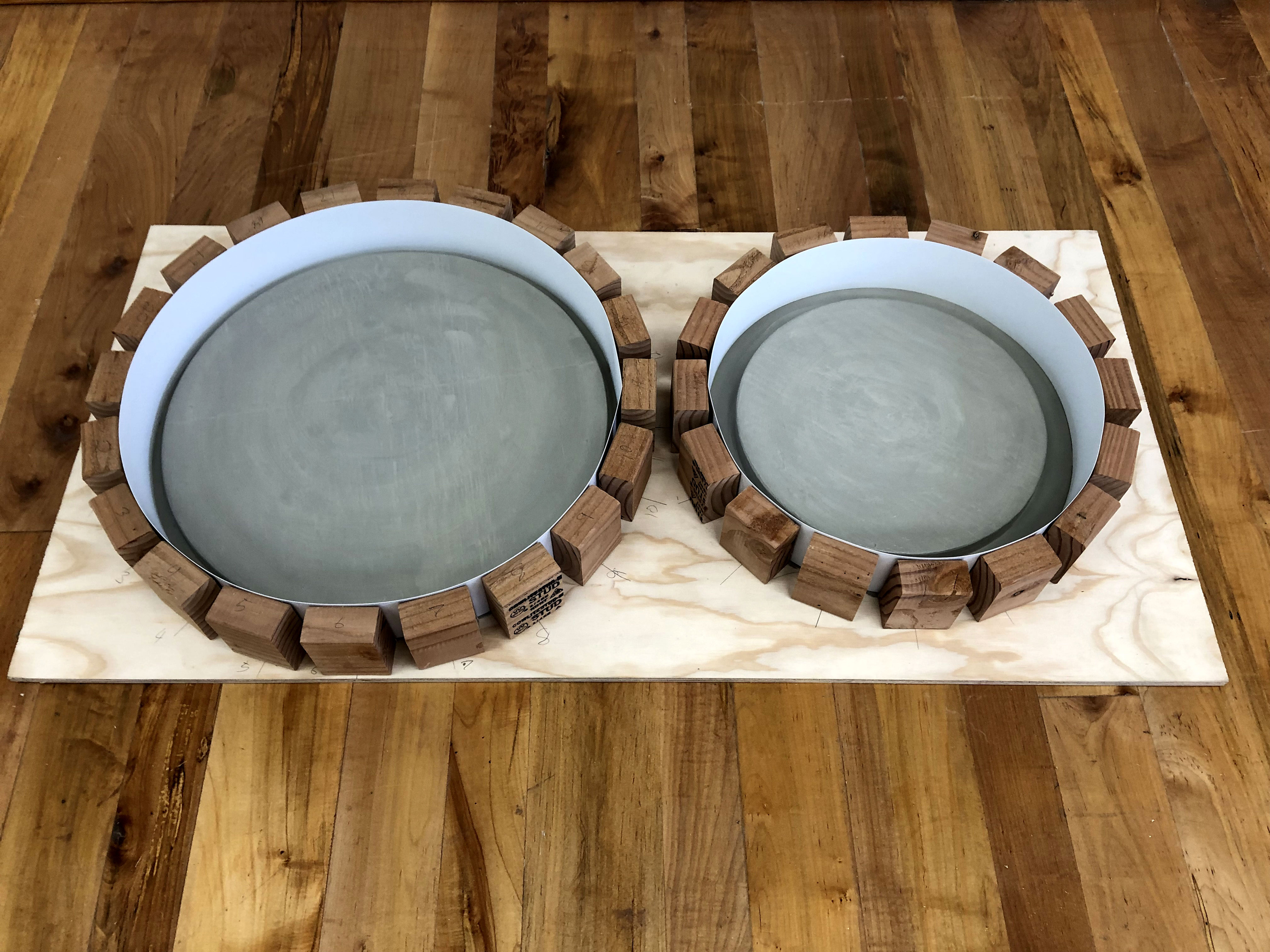 Built forms and poured concrete caps at specific sizes for septic tanks.