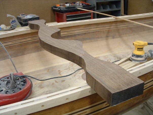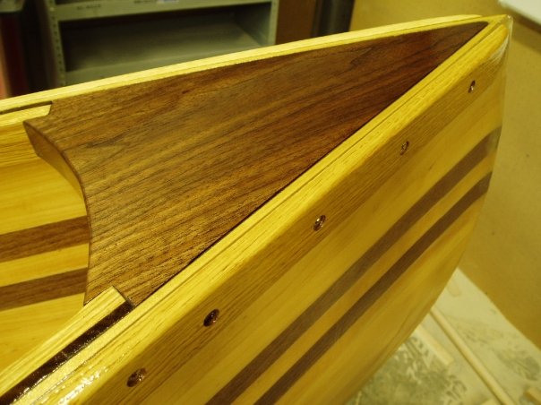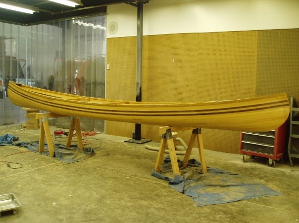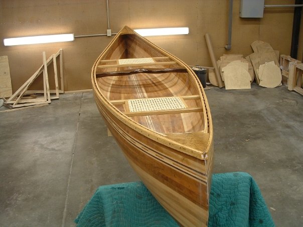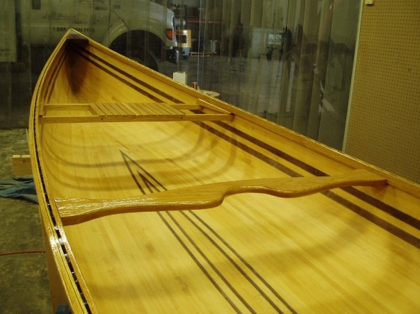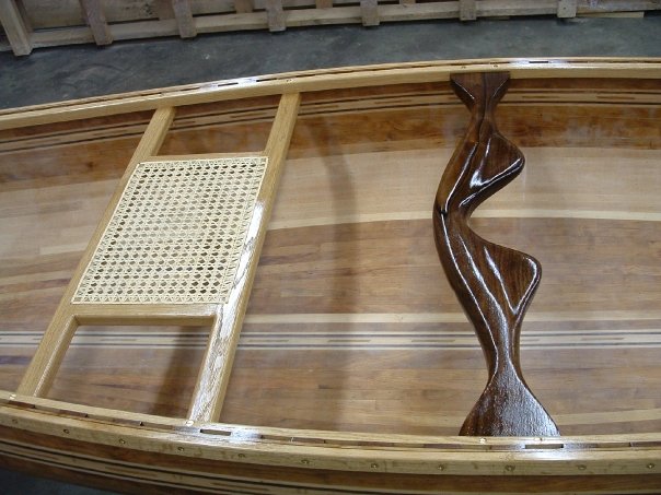 Materials: Maple, cherry, oak, walnut, & fiberglass Dimensions: 13' - 18'L Description: We've built multiple canoes in the traditional woodstrip style in different lengths from 13 to 18 feet. Featuring many different types of wood for the accents, seats and yoke, these woodstrip canoes are lightweight, fast and beautiful.